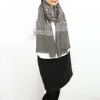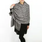 バランスの良い大判サイズで、巻きでも羽織でもどちらも使いやすいストールです。特に羽織は全面に施された刺繍が美しく輝き、サッとあしらうだけでゴージャスな雰囲気に変化します。