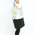 大判サイズのストールで肩から羽織る使い方もできます。春夏の日除けや室内の冷房対策としても使いやすくなっています。