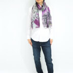 大人っぽい柄と上品な色合いで、甘さを抑えた一枚。一巻きでこなれた着こなしが叶う優秀ストールです。