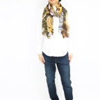 生地感よりカジュアルな普段使いにも、少しフォーマルなシーンでも使いやすいタイプです。スタイルや場所を問わず合わせることができる優れたストールです。