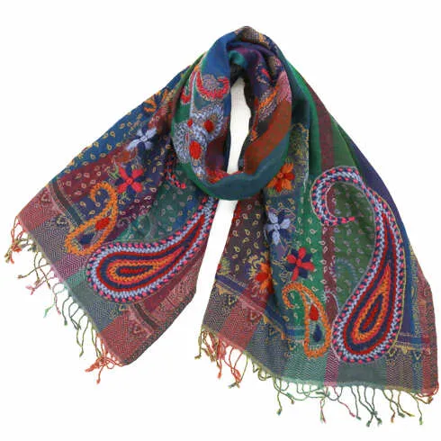 ウールストール/レイヤード刺繍デザイン