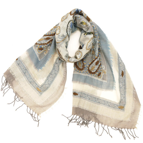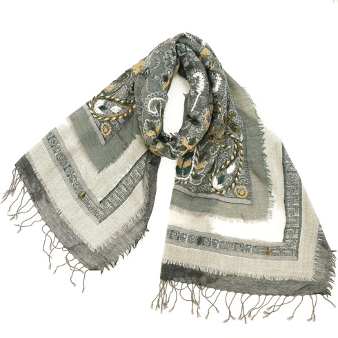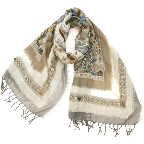 ウールストール/レイヤード刺繍デザイン