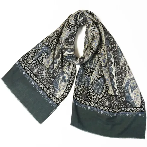 スーパーファインウールシルクストール/手刺繍デザイン