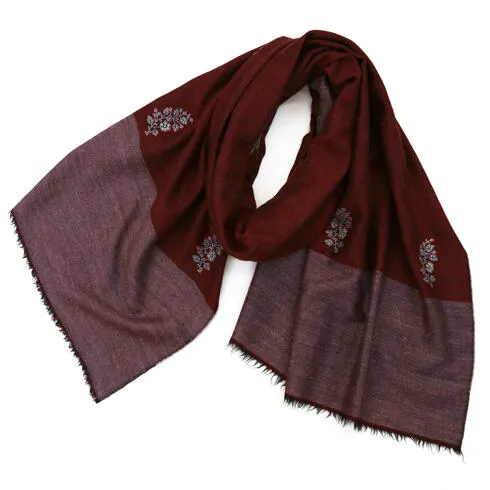 カシミヤストール:手織り/手刺繍/リバーシブルデザイン
