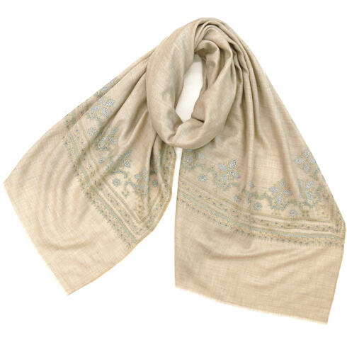 カシミアストール / 手紡ぎ・手織り・手刺繍
