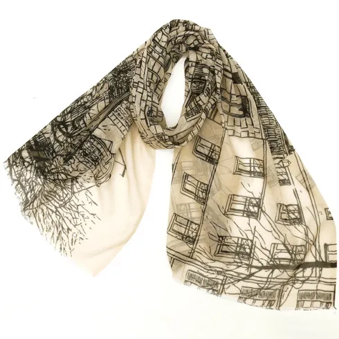 コットンシルクスカーフ/プリントデザイン