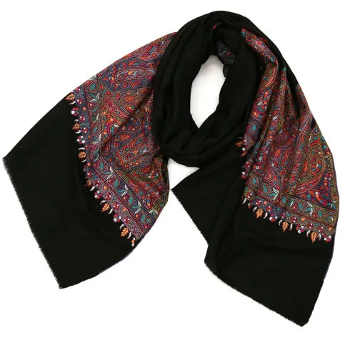 カシミヤストール:手織り/手刺繍/リバーシブルデザイン