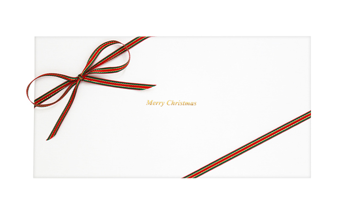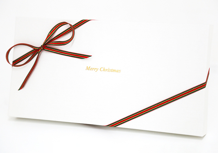 クリスマスギフト限定のオリジナルボックスにクリスマスをイメージしたリボンでお包みします。